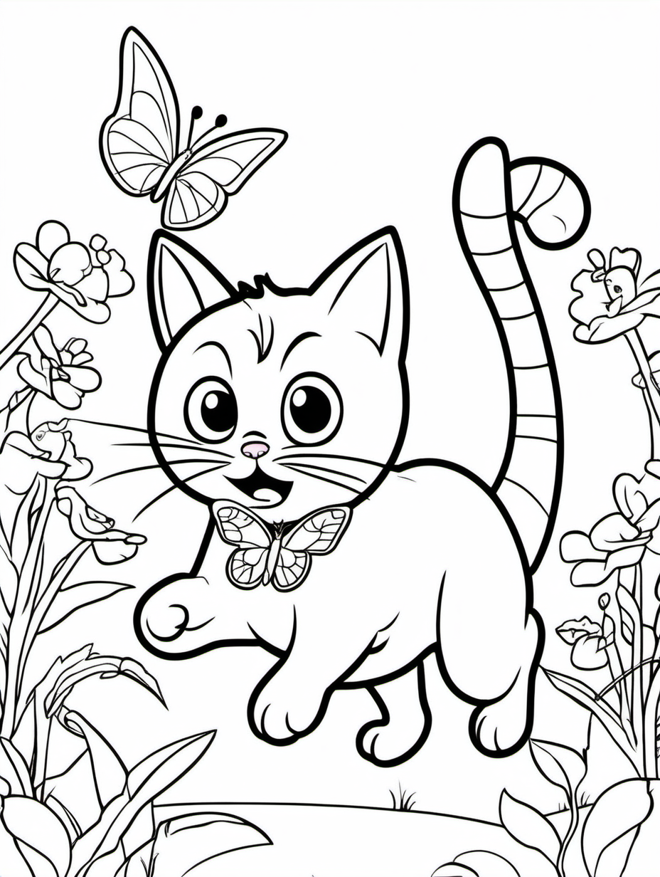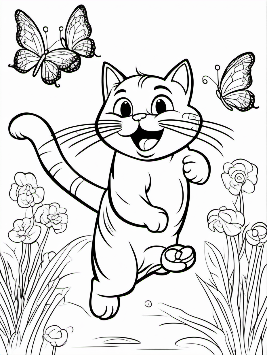 Cartoon Cat Chasing a Butterfly Coloring Activity1