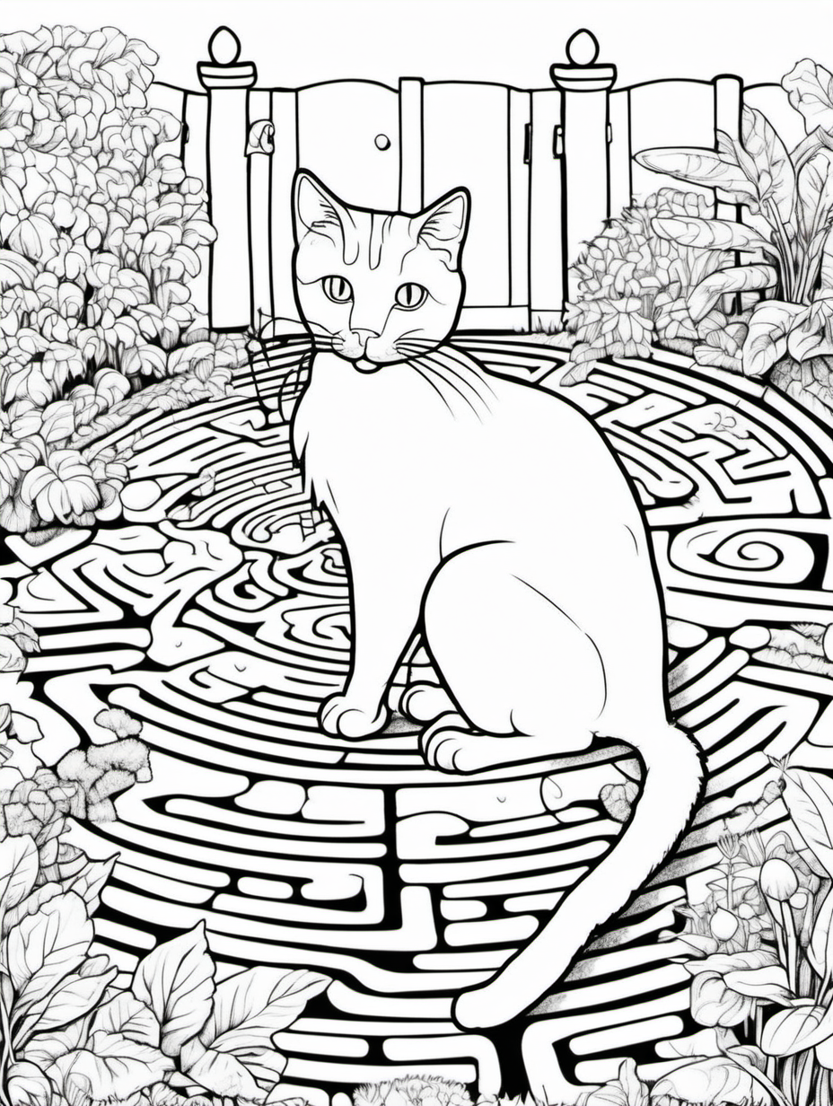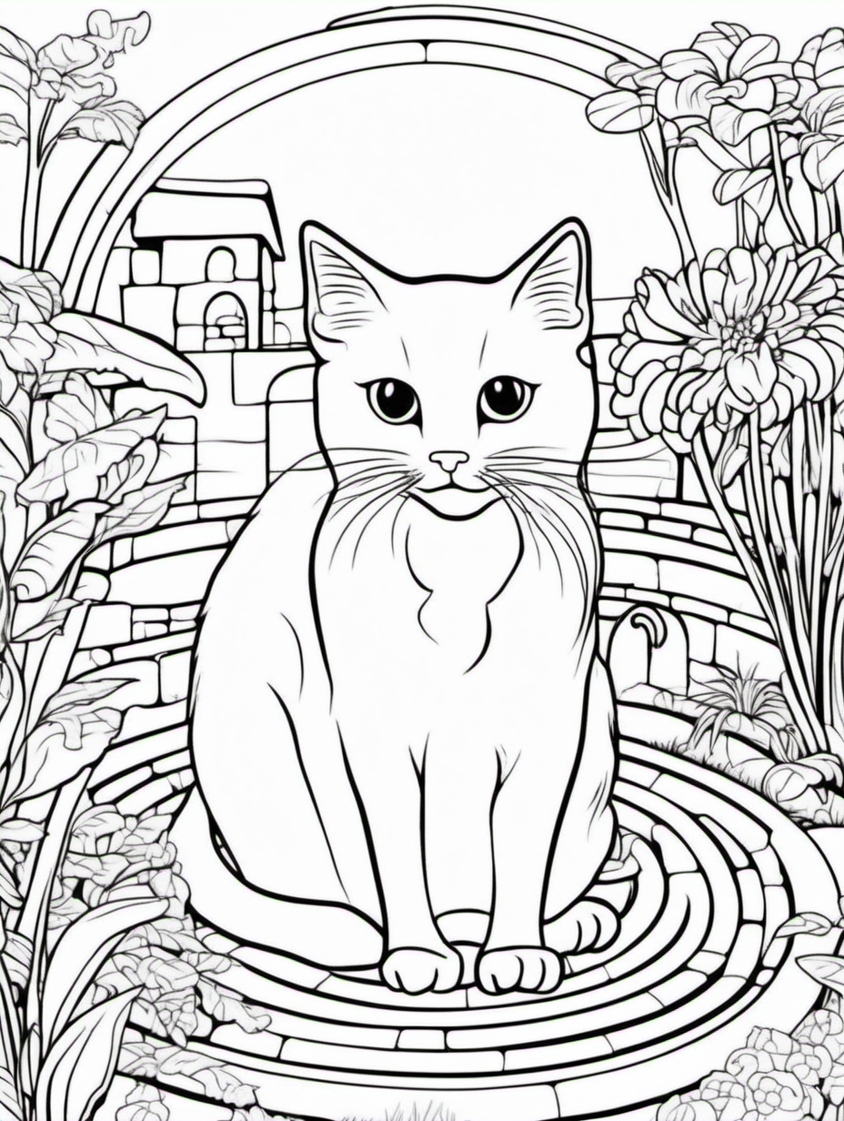 Cat Exploring a Garden Labyrinth Coloring Page2