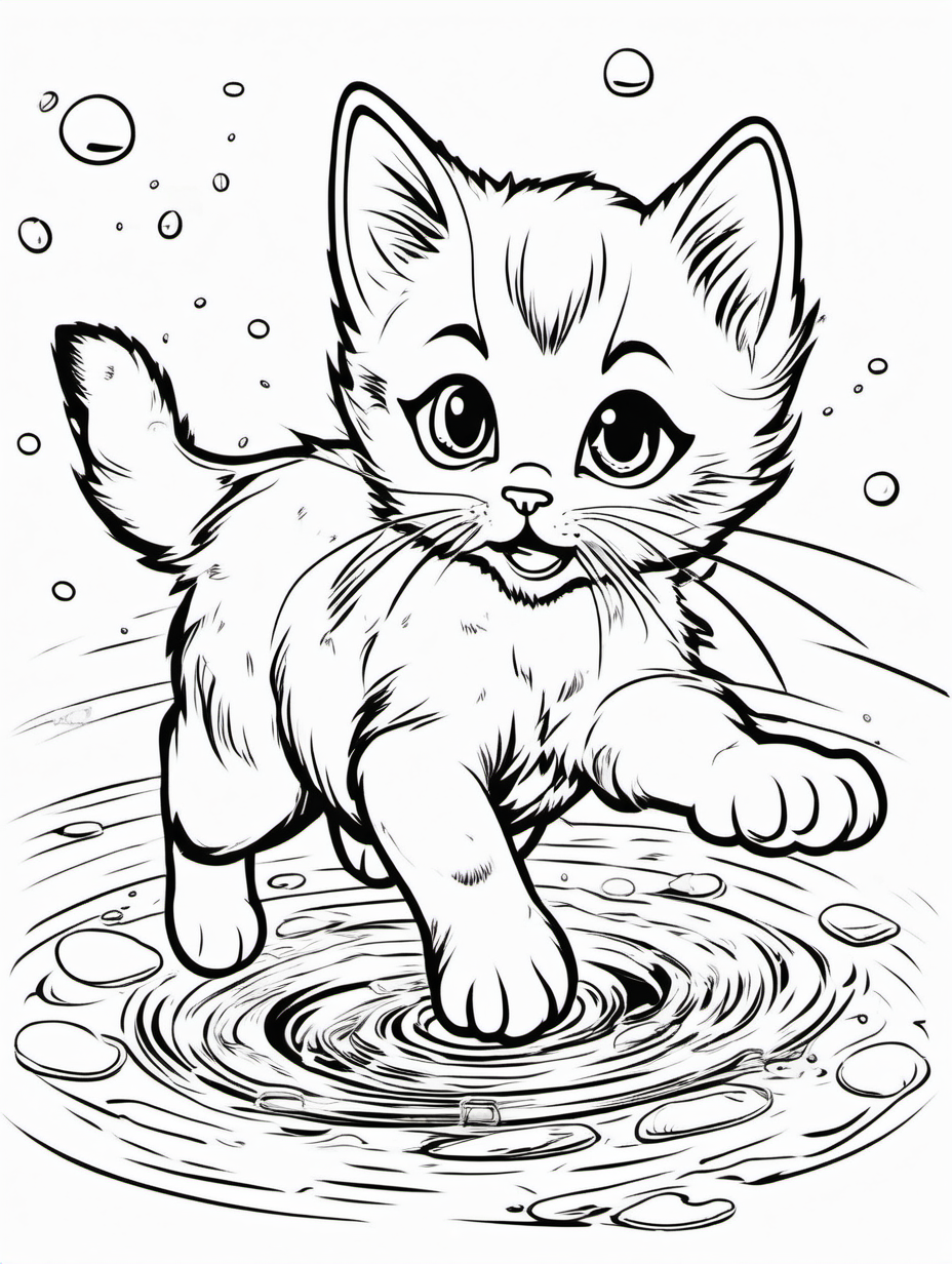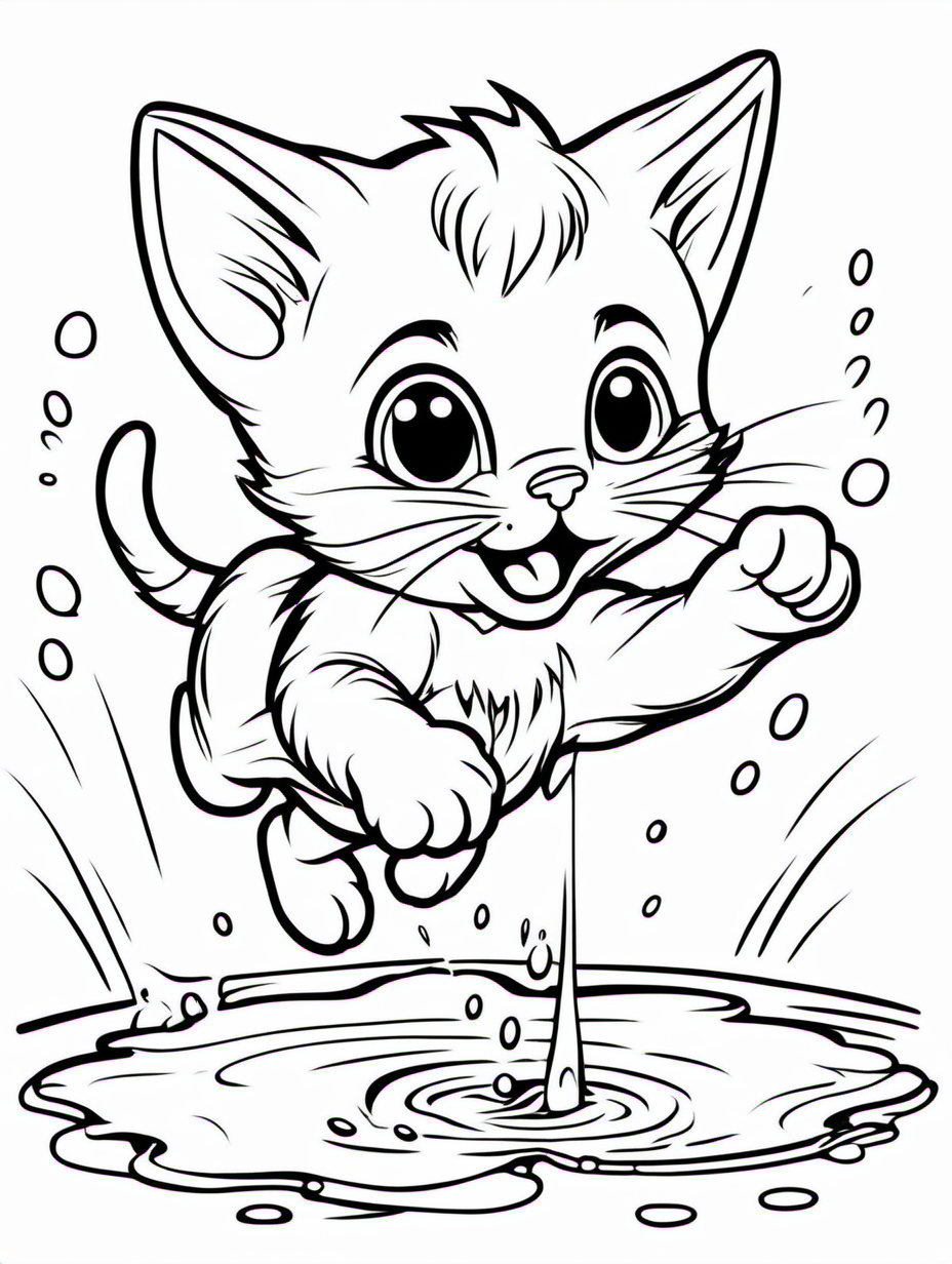 Energetic Kitten Jumping Over a Puddle Coloring Scene2