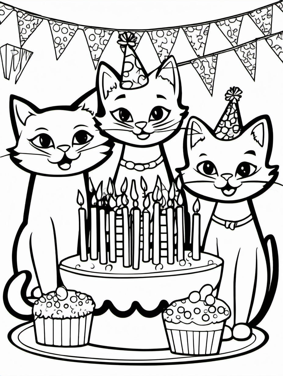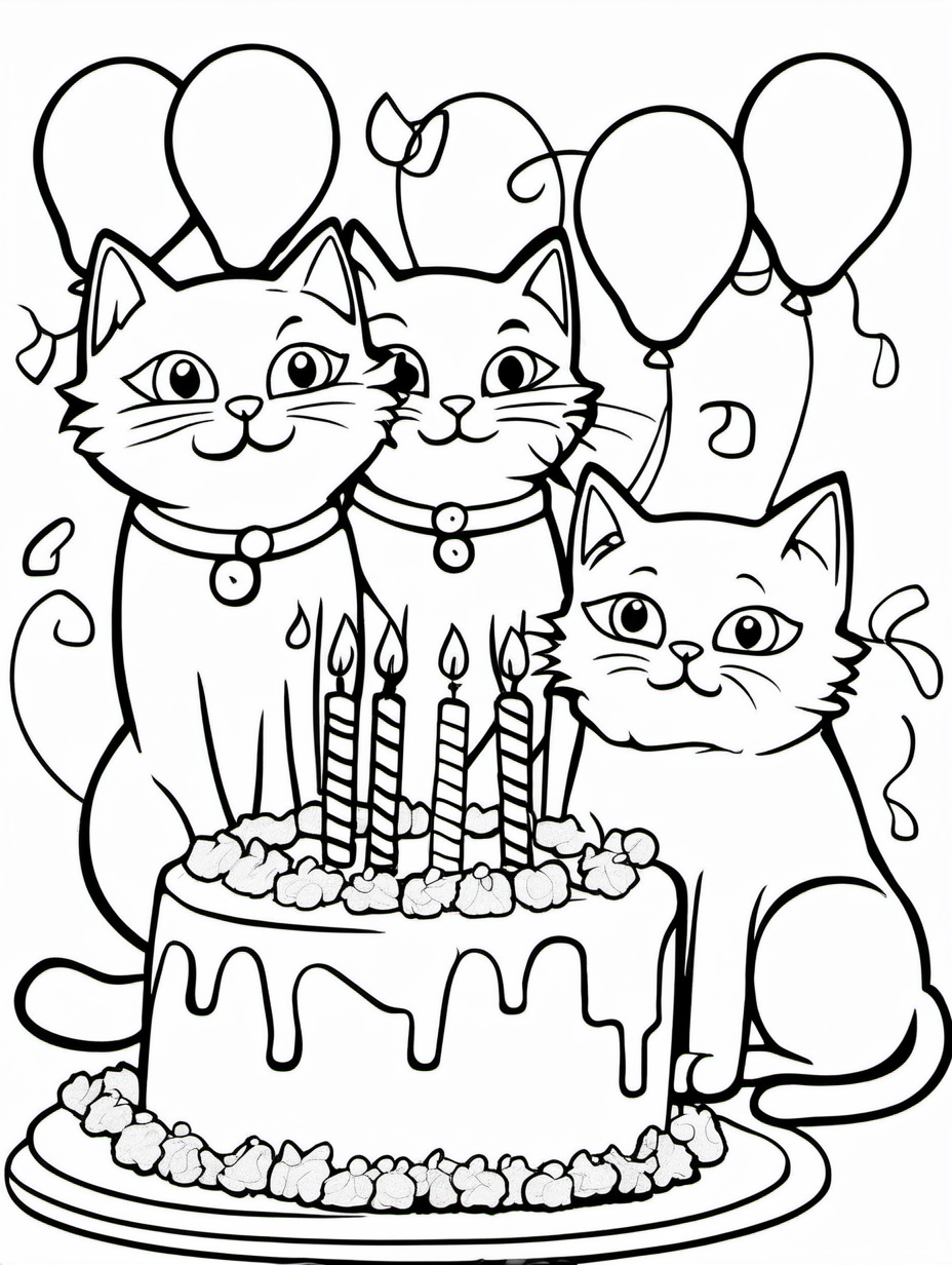 Group of Cats Celebrating a Birthday Party Coloring Page2