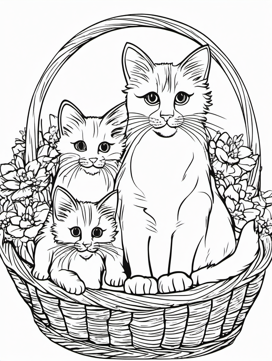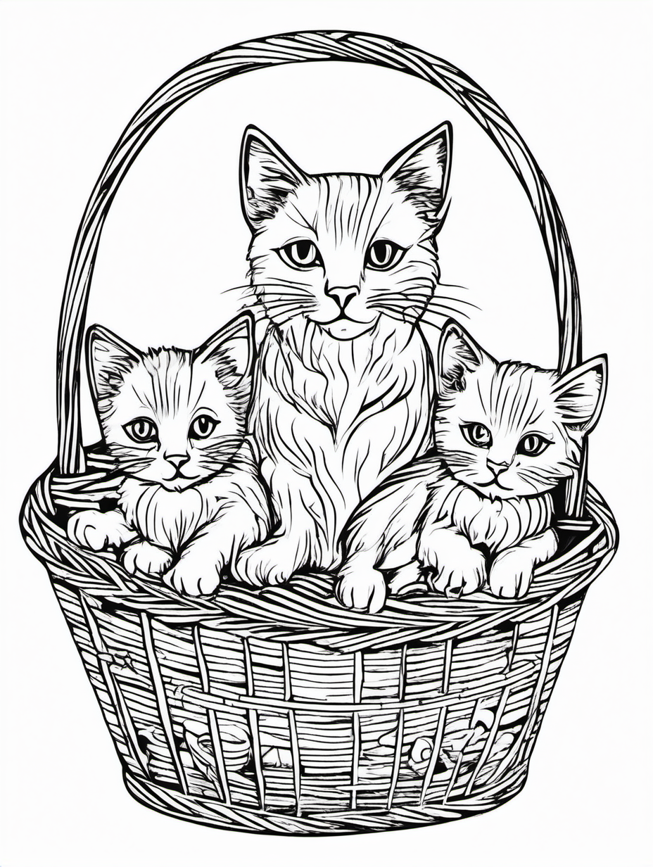 Mother Cat with Kittens in a Basket to Color2