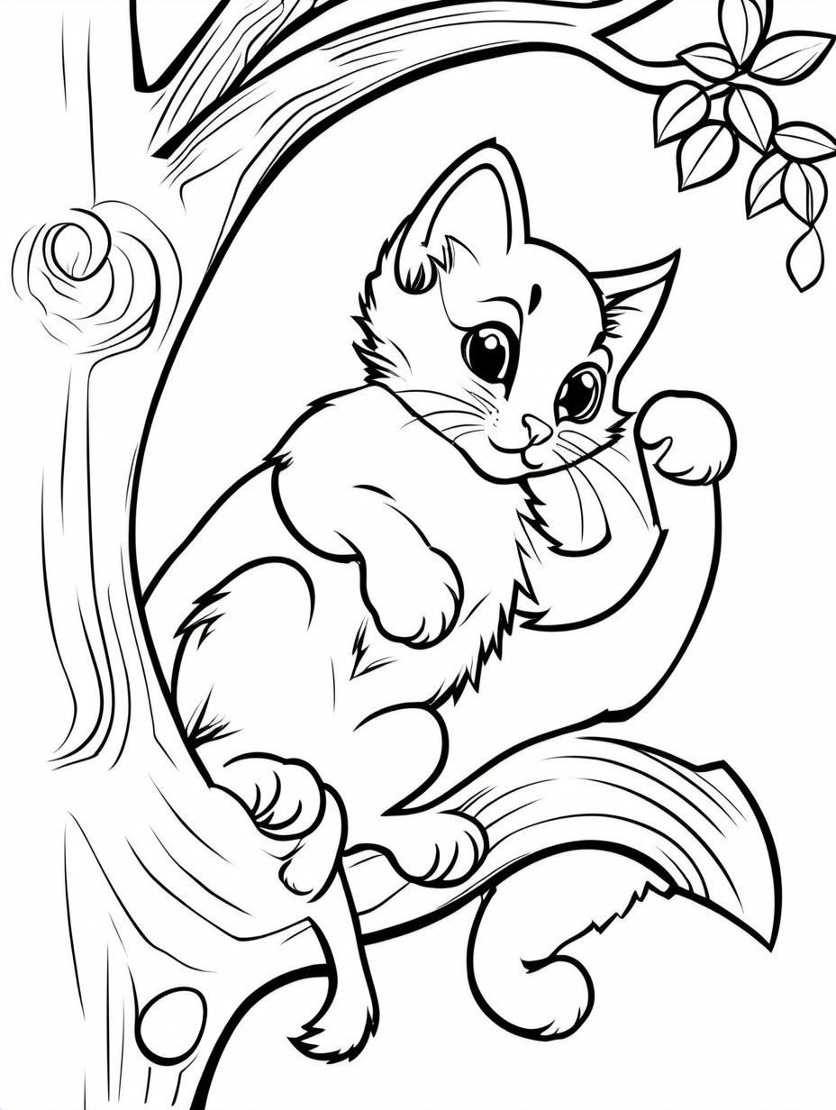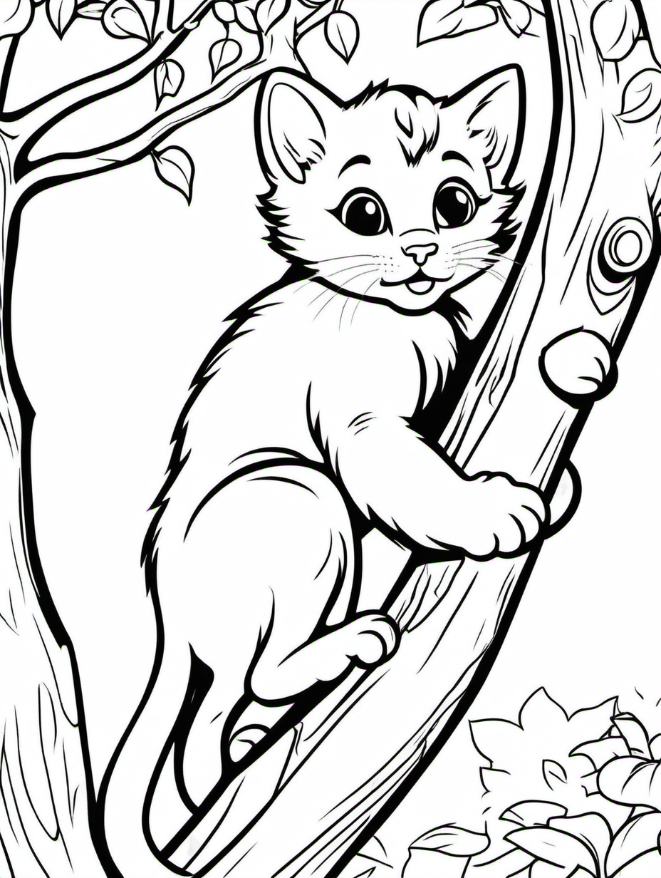 Playful Kitten Climbing a Tree Coloring Page2
