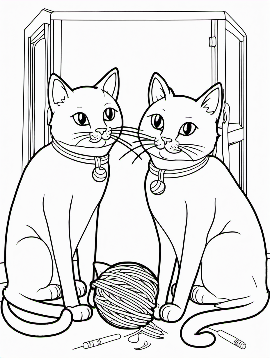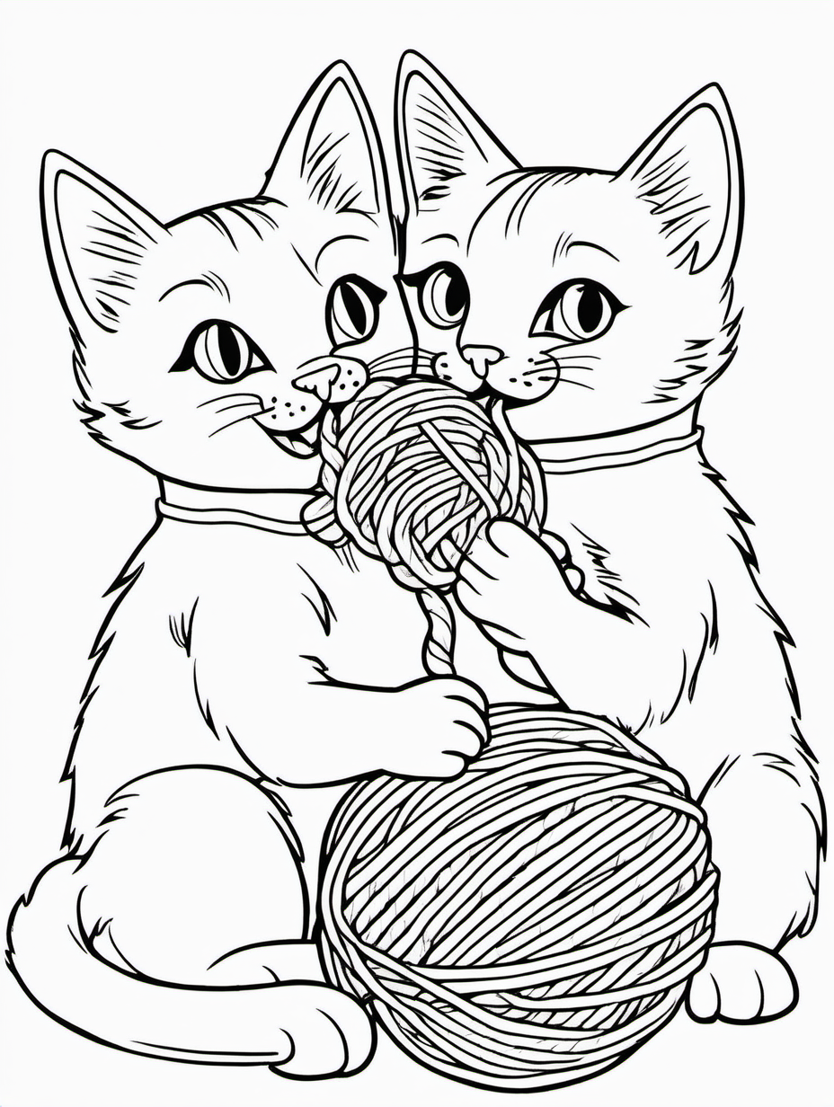 Two Cats Playing with a Ball of Yarn Coloring Sheet1